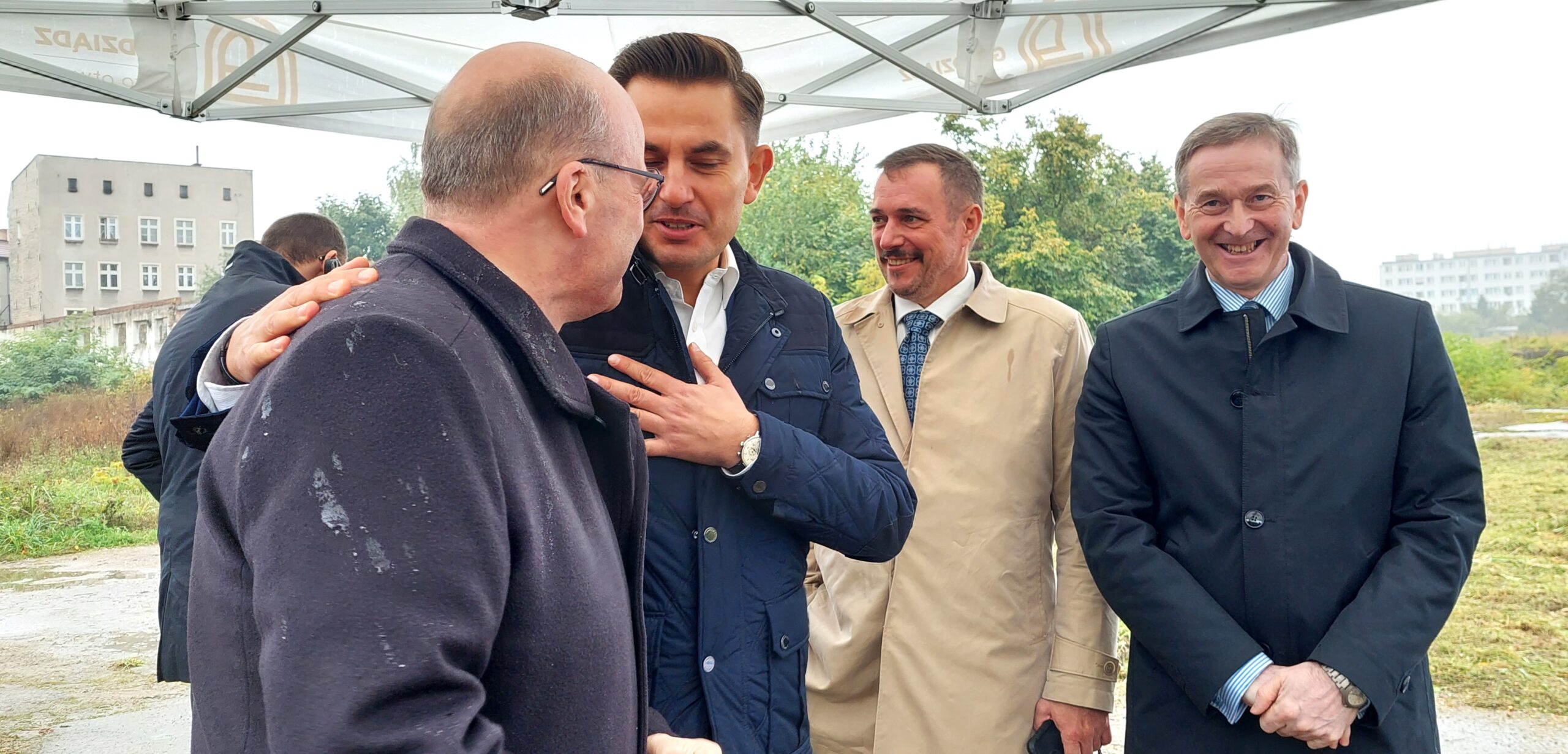W deszczu odbyła się konferencja prasowa z udziałem wiceministra i prezesów sądów