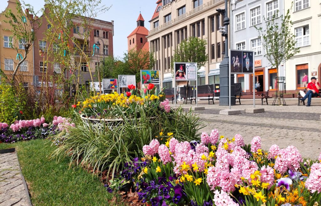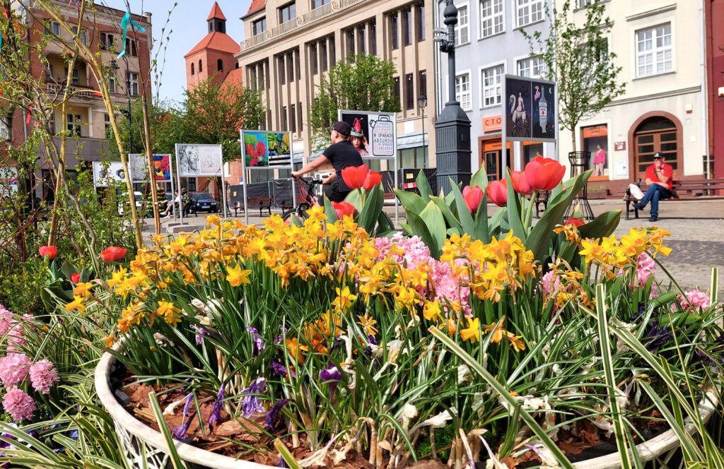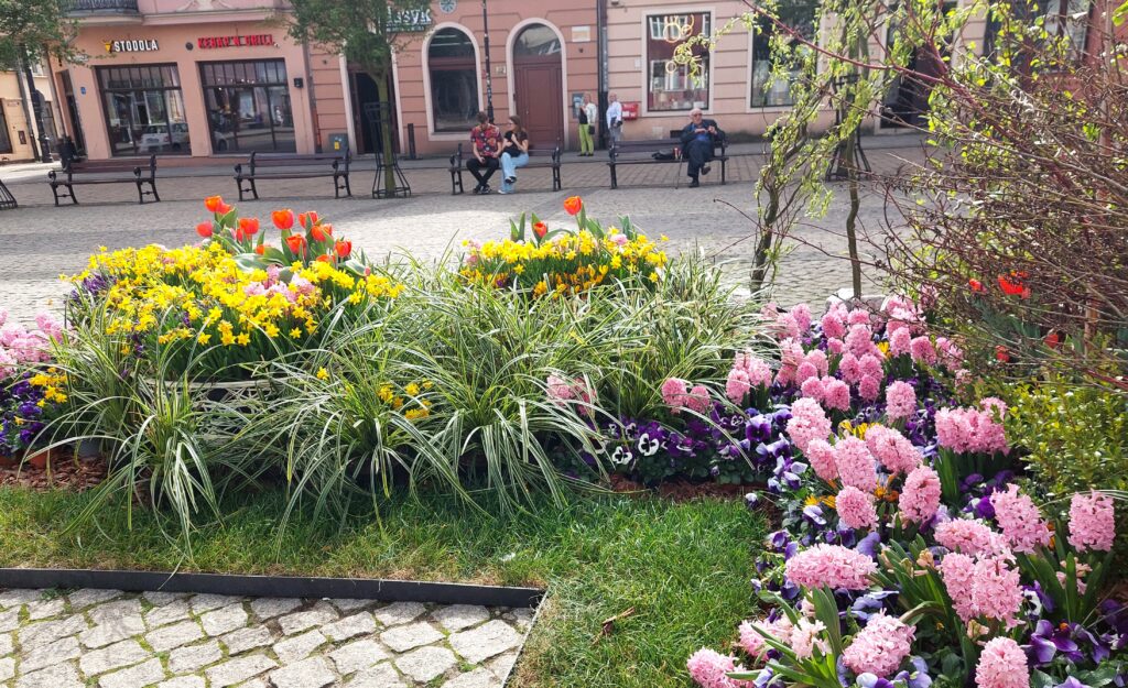 I w tle już nie szpeci na Rynku Dom Towarowy Korzeniewskich, gdyż ma odnawianą elewację…