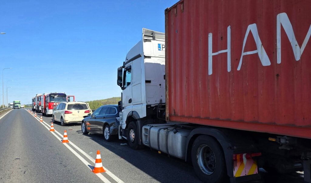 20 kwietnia po południu na ul. Jana Pawła II w Grudziądzu zderzyło się pięć pojazdów: ciężarówka i cztery osobowe. Karetki pogotowia zabrały do szpitala trzy osoby (zdjęcia)