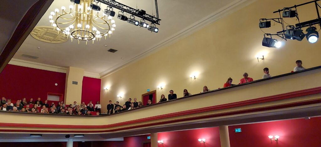 Absolwenci, uczniowie, nauczyciele, władze miasta i regionu, darczyńcy, przyjaciele szkoły stawili się tłumnie w teatrze. Na parkingu brakowało miejsc do ustawiania aut. Przy komplecie na widowni odbyła się kulminacyjna uroczystość. Trwała 3 godziny, bo działo się wiele.