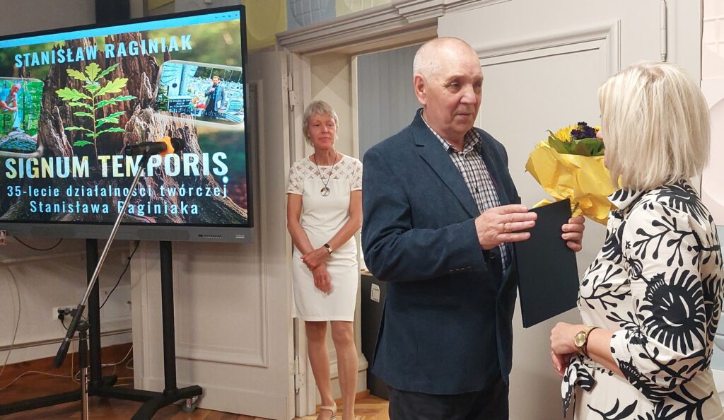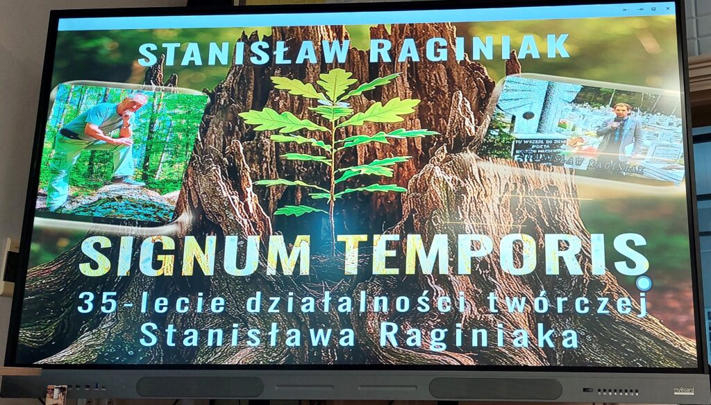 Drugą książką, jaką promował grudziądzki literat jest „Signum Temporis. 35-lecie działalności twórczej Stanisława Raginiaka”. Zawiera teksty wybrane (poezję i prozę z lat 1990-2025″.