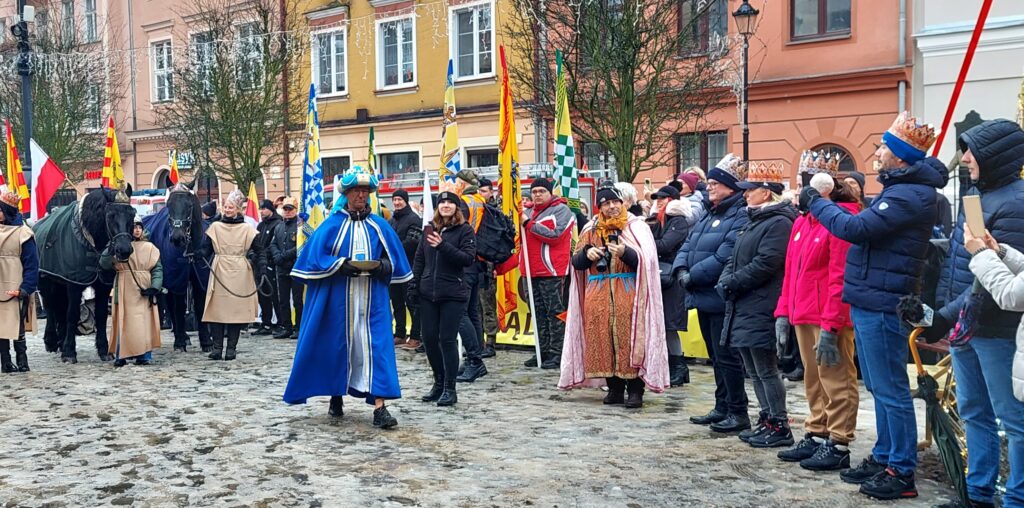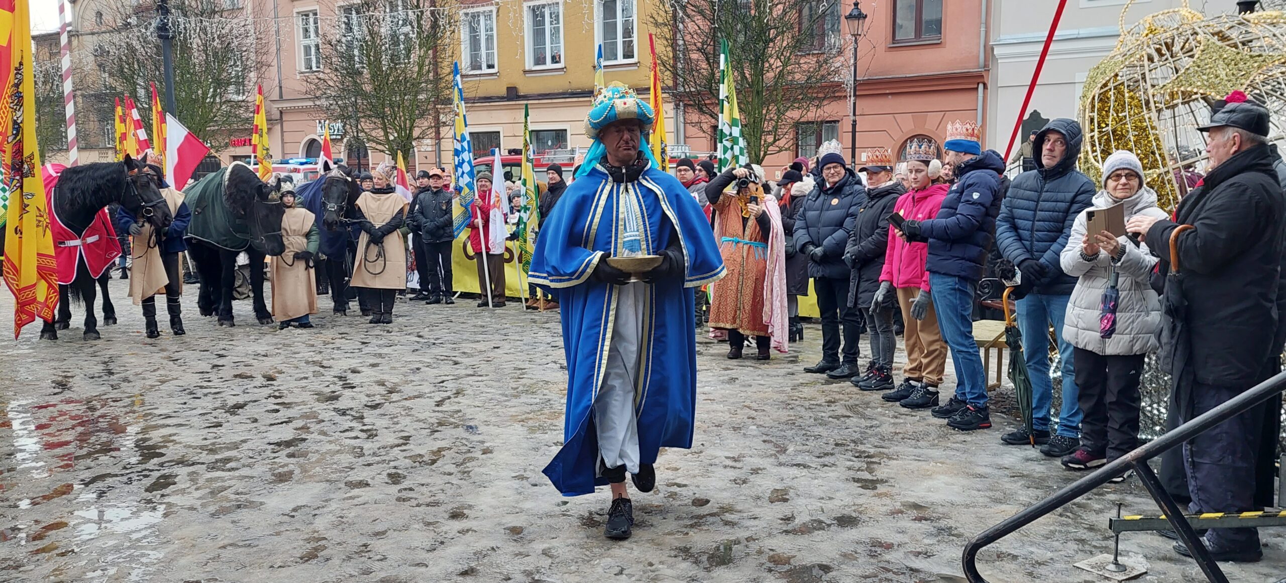 Orszak Trzech Króli dochodzi do pl. Niepodległości w Grudziądzu: