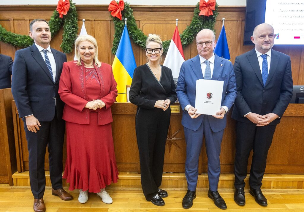 Wręczenie umów na przyznane przez marszałka województwa Piotra Całbeckiego (pierwszy z prawej) projekty odbyło się w Urzędzie Marszałkowskim w Toruniu. Umowy na grudziądzkie projekty odebrał prezydent Maciej Glamowski (drugi z prawej).