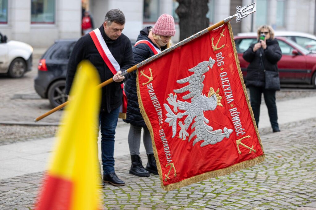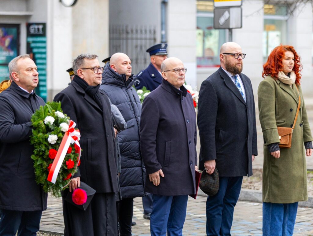 W uroczystości wzięli udział m.in. przewodniczący Rady Miejskiej Szymon Gurbin, prezydent Maciej Glamowski, działacze Solidarności ze sztandarami, uczniowie III LO z dyrektorem Łukaszem Piaseckim, ks. kanonik Dariusz Kunicki, klasa mundurowa.