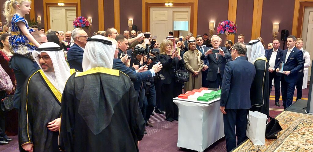 | Wśród gości był m.in. wiceminister spraw zagranicznych RP Andrzej Szejna i wicemarszałek Sejmu RP Krzysztof Bosak. Ambasador Saad Abdulaziz Almehaini wygłosił przemówienie, w którym mówił o niepodległości Kuwejtu, rozwoju tego państwa i współpracy z Polską. Przypomniał, że z początkiem 1961 roku Kuwejtczycy rozpoczęli wprowadzanie prawa miejscowego i przejmowanie władzy z rąk Brytyjczyków. Państwo uzyskało pełną niepodległość po podpisaniu układu z Wielką Brytanią, która zrzekła się protektoratu. |