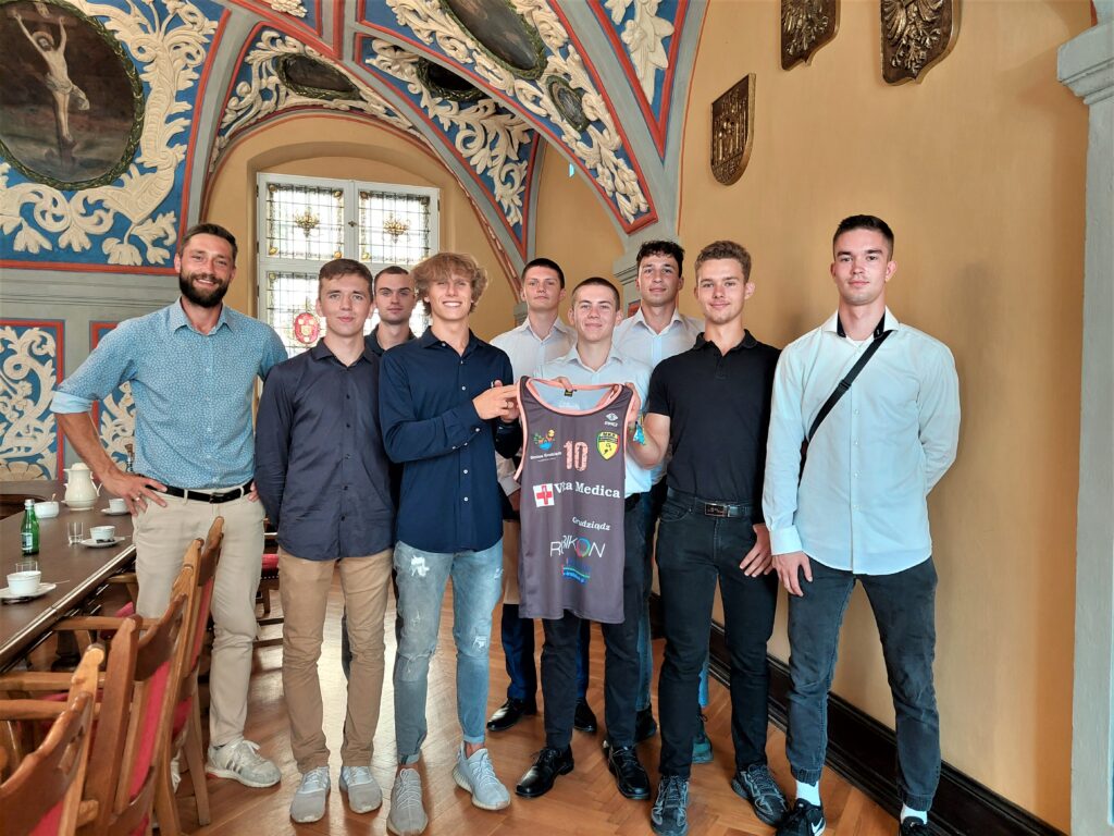 Mistrzów Polski w piłce ręcznej plażowej i jego trenera Mateusza Orłowskiego przyjął uroczyście w Refektarzu Ratusza Maciej Glamowski, prezydent Grudziądza.