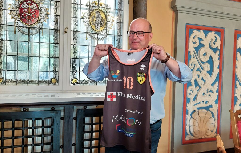 Prezydent Grudziądza Maciej Glamowski wręczył zawodnikom upominki a sam odebrał od trenera Mateusza Orłowskiego reprezentacyjną koszulkę MKS-u Delfin Grudziądz.