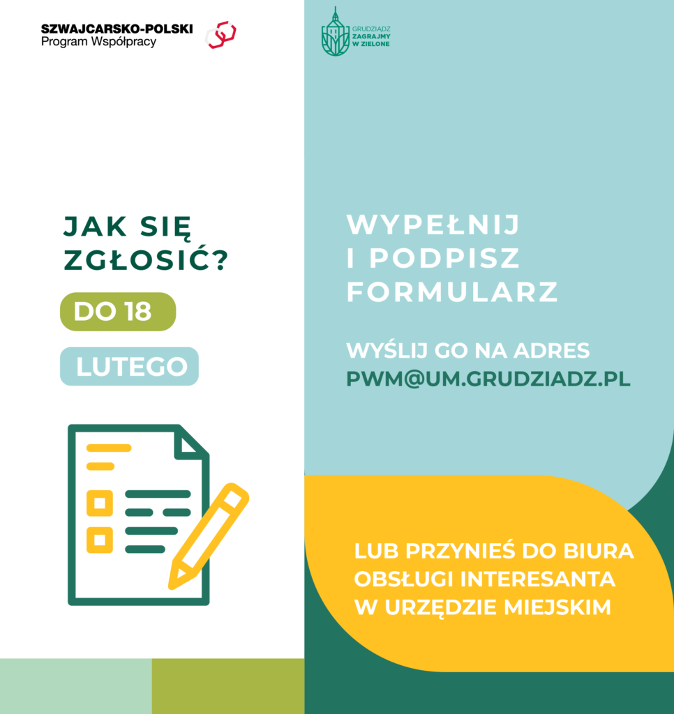 Wypełniony formularz można przesłać mailowo na adres pwm@um.grudziadz.pl lub przynieść osobiście do Biura Obsługi Interesanta przy ul. Ratuszowej 1. Nabór trwa do 18 lutego.