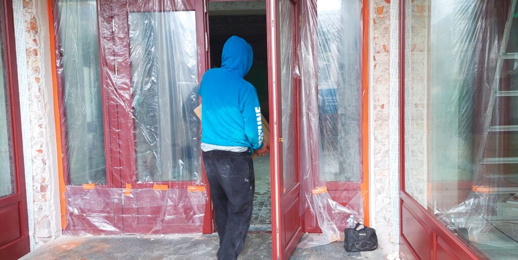 Dziś jeszcze zamontowane witryny były przykryte i zabezpieczone folią, ale było widać, że wejście do tego zabytku jest bardzo ładne.