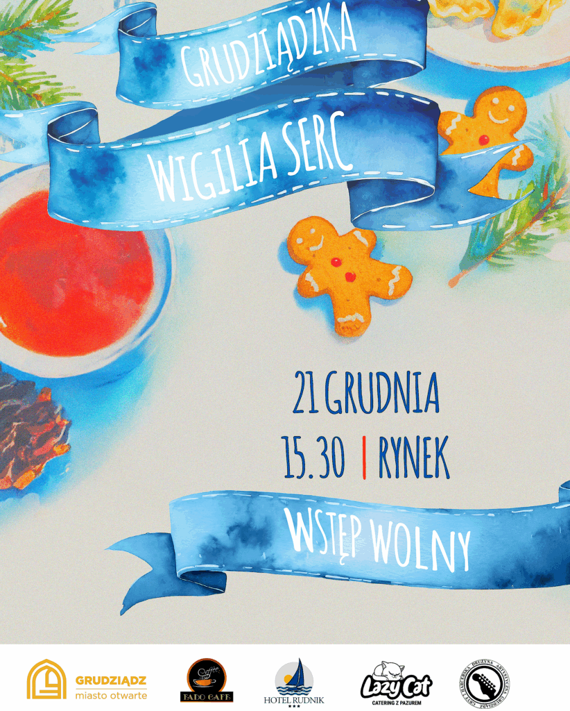 Partnerami Grudziądzkiej Wigilii Serc są FADO Cafe oraz Hotel Rudnik i Lazy Cat – catering z pazurem. Wspólne kolędowanie zapewni 2 Grudziądzka Wielopoziomowa Artystyczna Drużyna Harcerska – GRYF pod kierunkiem Piotra Jezierskiego.
