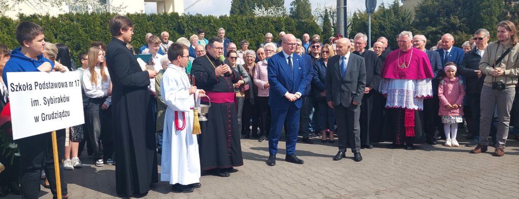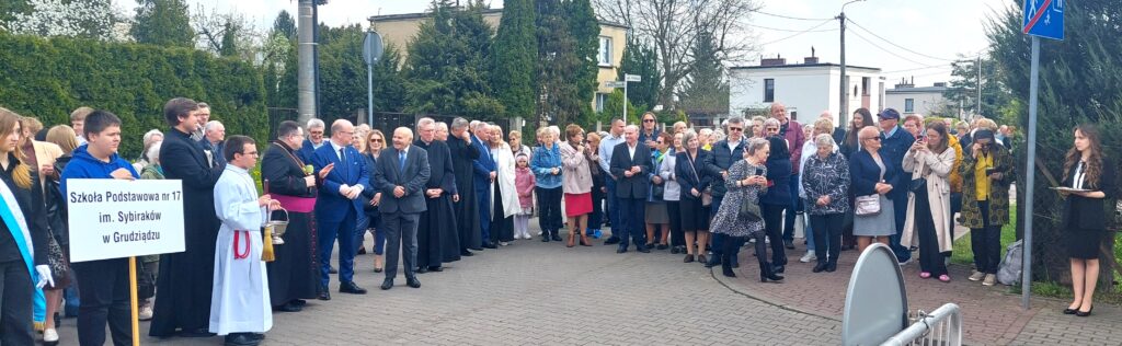 Po mszy św. liczne grono mieszkańców, z prezydentem Grudziądza Maciejem Glamowskim przeszli do miejsca, gdzie uroczyście przecięta została wstęga. Były poczty sztandarowe, m.in. Szkoły Podstawowej nr 17 im. Sybiraków. Byli przedstawiciele koła Związku Sybiraków z prezes Danutą Kołodziejską, kapłani dekanatu, władze miejskie.