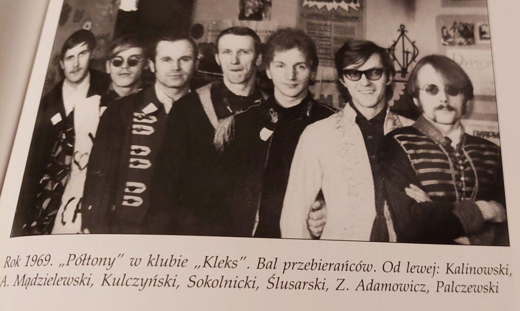 Fotografie archiwalne z występów Tadeusza Palczewskiego z zespołami, na zdjęciu m.in. z zespołem w Klubie Pracowników Przemysłu Spożywczego i Cukrowniczego i z „Demonami” w klubie GZPGum Stomil przy ul. Wybickiego.