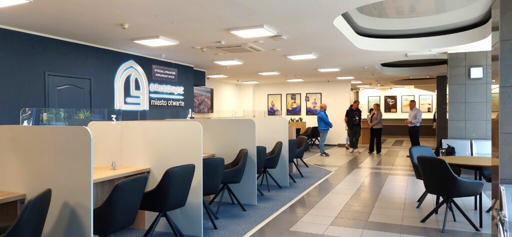 Gmach przy ul. Chełmińskiej 68 miasto wynajmuje od Spółdzielni Mieszkaniowej w Grudziądzu. Umowa zawarta jest na 5 lat z możliwością jej przedłużenia. Obiekt po banku najbardziej nadawał się do zaadaptowania na nową siedzibę Urzędu Miejskiego, a rozważane były inne nieruchomości. Komfort zyskają urzędnicy, ale przed wszystkim mieszkańcy, którzy przyjdą tu załatwiać sprawy. Jest dużo miejsca. Oprócz biurek i szafek dla pracowników wydzielono miejsce na stoliki i krzesełka dla interesantów, gdzie mogą swobodnie napisać pismo czy wypełnić kwestionariusz. Szacuje się, że w obiekcie przy ulicy Chełmińskiej 68 miesięcznie może być obsługiwanych nawet 2 tysiące interesantów.