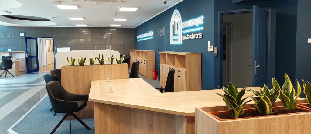 Jest tu duże ułatwienie dla niepełnosprawnych, nie ma barier. W nowocześnie urządzonym obiekcie będzie pracować 10 procent urzędników Ratusza. W nowym Centrum Obsługi Mieszkańców jest wydzielone stanowisko informacyjne dla osób przychodzących załatwić tu sprawy, interesanci będą kierowani do odpowiednich wydziałów. Także tu będą przyjmowane wnioski, które docelowo trafią do Urzędu Miejskiego przy ul. Ratuszowej.
